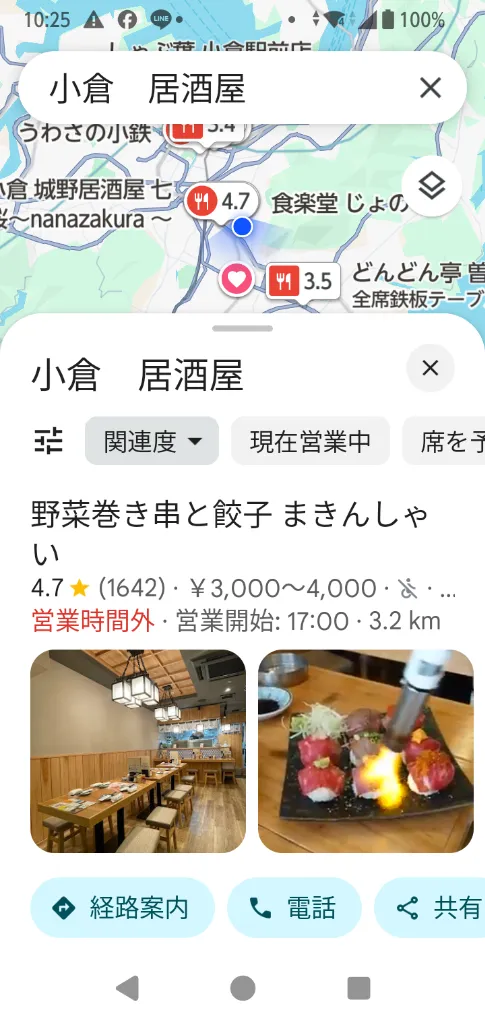 お店の情報・場所を同時に確認したい目的のため、GoogleMap検索も同様のことが言えます。